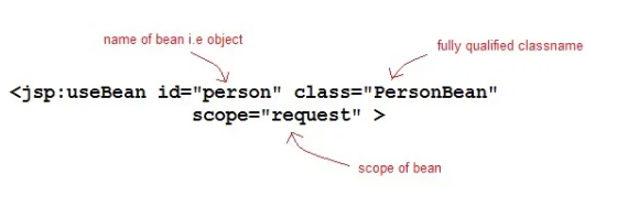<jsp:useBean id="myBean" class="PersonBean" scope="request" />