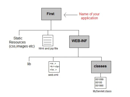 Create the above directory structure inside Apache-Tomcat\webapps directory. All HTML, static files(images, css etc) are kept directly under Web application folder. While all the Servlet classes are kept inside classes folder.